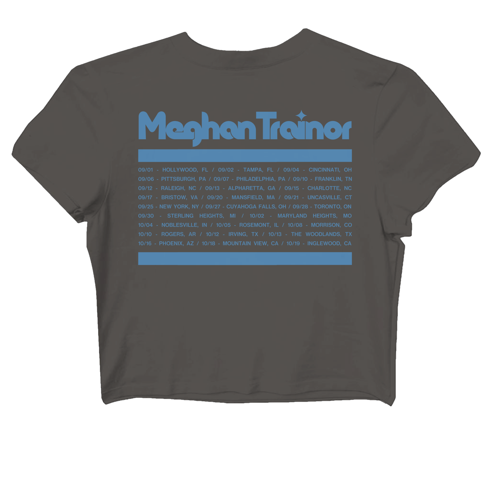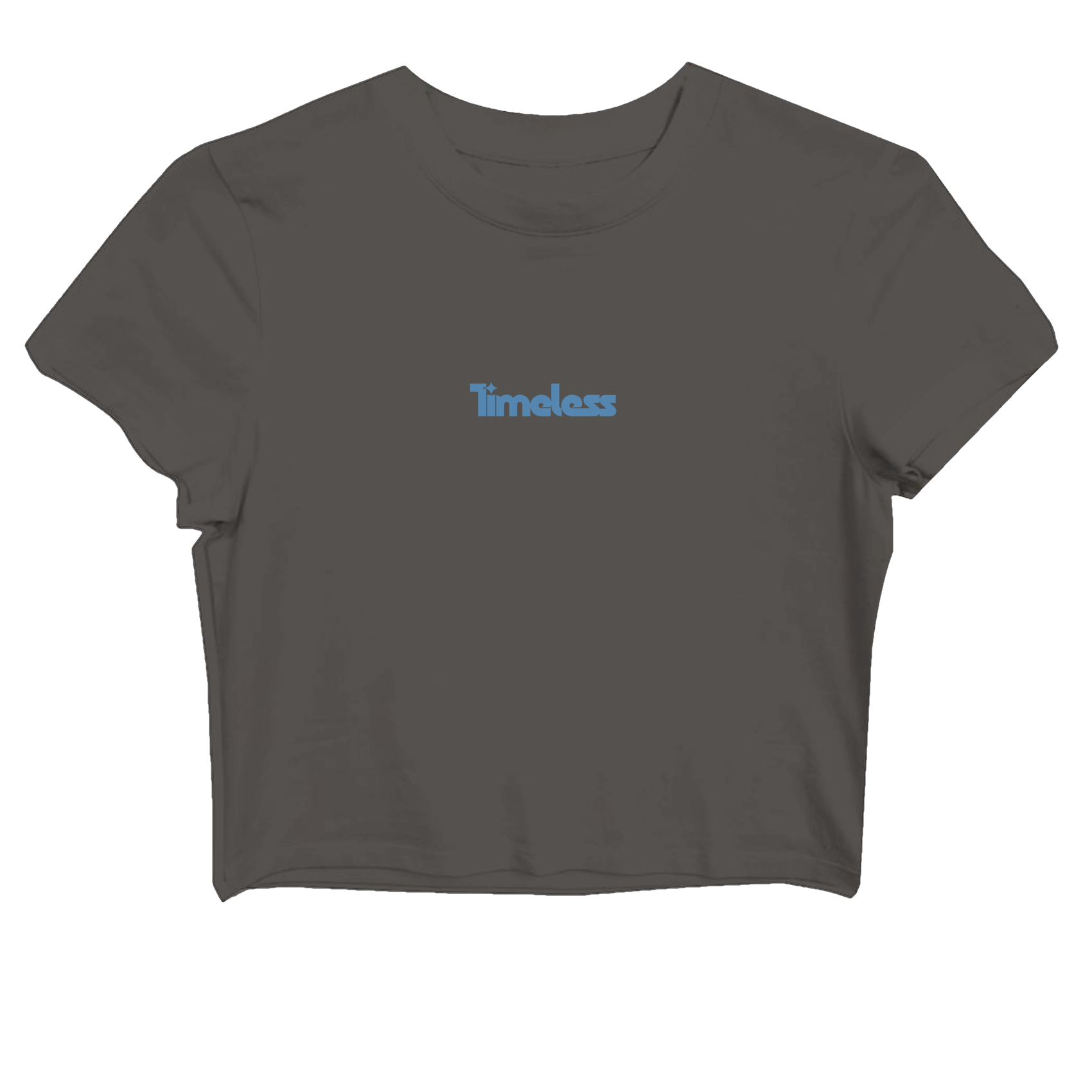 Ladies Dark Grey crop tee with Timeless on the front and event dates on the back